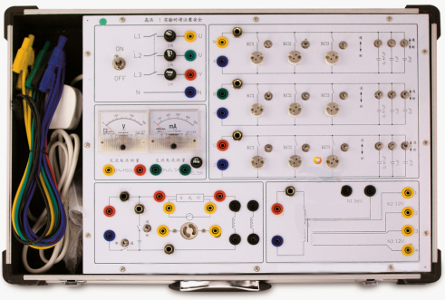 電工技術(shù)實(shí)驗(yàn)箱主要是進(jìn)行電工學(xué)及電路原理中的強(qiáng)電部分實(shí)驗(yàn),如單相交流電路、三相電路、日光燈電路實(shí)驗(yàn)。本實(shí)驗(yàn)箱由模塊單元和元件庫(kù)相結(jié)合的板面構(gòu)成,全部采用歐洲標(biāo)準(zhǔn)的安全插座和安全實(shí)驗(yàn)導(dǎo)線,連線方便,接觸可靠,而且壽命長(zhǎng)、效率高,有效預(yù)防觸電隱患。實(shí)驗(yàn)面板上印有元件符號(hào)及主要參數(shù)便于學(xué)生識(shí)別。實(shí)驗(yàn)箱結(jié)構(gòu)緊湊實(shí)用直觀,安全可靠,能有效培養(yǎng)學(xué)生的動(dòng)手能力,維修方便、簡(jiǎn)捷?蓾M足各類(lèi)高、中等院校及職業(yè)技術(shù)類(lèi)院校開(kāi)設(shè)的電工典型實(shí)驗(yàn)。