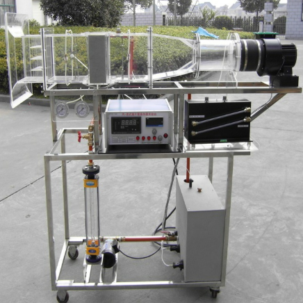 循環(huán)防腐水泵,轉(zhuǎn)子流量計(jì),翅片管式換熱器,風(fēng)洞實(shí)驗(yàn)段,離心式風(fēng)機(jī),自動(dòng)調(diào)節(jié)風(fēng)門,笛形管及差壓測(cè)風(fēng)速裝置,加熱由固體調(diào)壓模塊無(wú)級(jí)調(diào)節(jié),控制測(cè)試儀表箱,不銹鋼加熱水箱,巡檢儀顯示溫度、水和風(fēng)的阻力及風(fēng)速,不銹鋼臺(tái)架及控制屏。