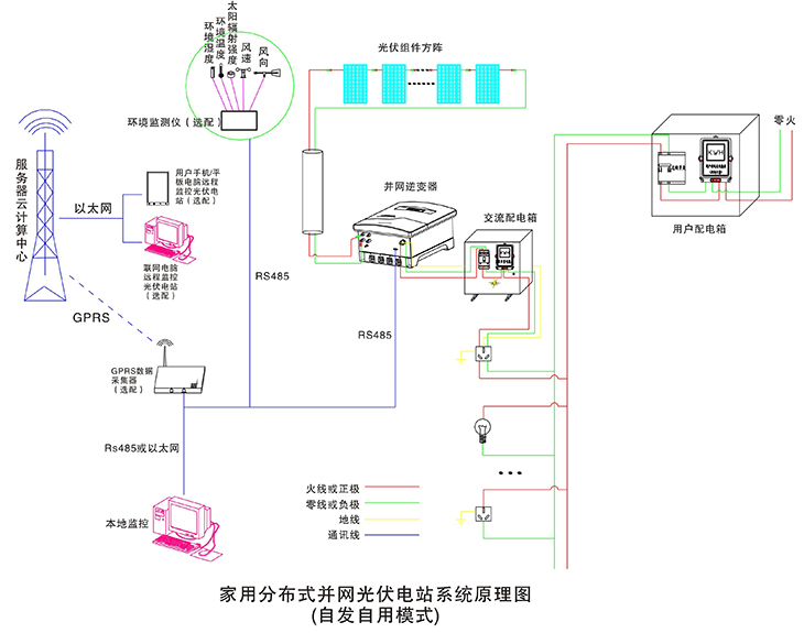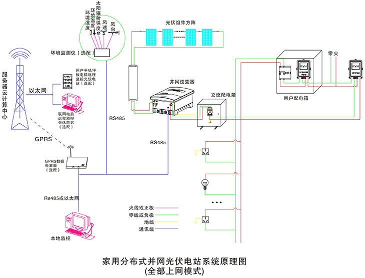 在晴朗的白天,裝在屋頂上的光伏組件發(fā)出的直流電經(jīng)過并網(wǎng)逆變器逆變成與電網(wǎng)同頻率同相位的單相交流電給負(fù)載進(jìn)行供電,在夜晚或陰雨天等太陽光照不足的情況下,系統(tǒng)處于待機(jī)狀態(tài),負(fù)載用電全部來自電網(wǎng)。您可以通過系統(tǒng)監(jiān)控軟件來實(shí)時(shí)查看系統(tǒng)的運(yùn)行狀態(tài)和故障信息,或者是選配遠(yuǎn)程通訊數(shù)據(jù)采集器,將系統(tǒng)工作數(shù)據(jù)通過GPRS或以太網(wǎng),傳輸?shù)侥氖謾C(jī)、平板電腦或任意一臺(tái)聯(lián)網(wǎng)的電腦,以便于您遠(yuǎn)程實(shí)時(shí)掌控電站的信息。