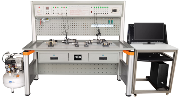 實(shí)驗(yàn)臺(tái)由實(shí)驗(yàn)桌、實(shí)驗(yàn)操作區(qū)、網(wǎng)孔工具掛板、靜音氣泵、常用氣動(dòng)元件、主控機(jī)箱、電腦桌等幾部分組成。
