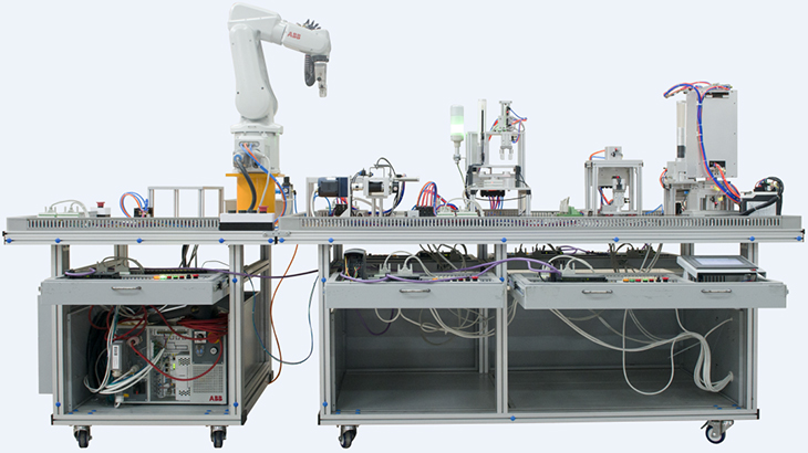 工業(yè)機器人循環(huán)生產(chǎn)線實訓(xùn)裝備,工業(yè)機器人智能生產(chǎn)線實訓(xùn)系統(tǒng)以工業(yè)化現(xiàn)場真應(yīng)用作為教學(xué)藍(lán)本,采用多種型式、多種規(guī)格、多種應(yīng)用組合成型的工業(yè)應(yīng)用生產(chǎn)線。主要以體現(xiàn)工業(yè)機器人典型應(yīng)用,讓學(xué)生撐握真實工業(yè)機器人現(xiàn)場應(yīng)用方法。通過以工業(yè)現(xiàn)場真實應(yīng)用案例實訓(xùn),縮短教學(xué)實訓(xùn)與工廠崗位應(yīng)用的差距。