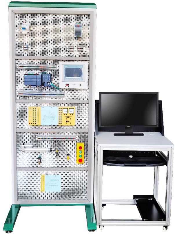 2. 采用模塊組合式結(jié)構(gòu),含開關(guān)量、模擬量、變頻調(diào)速、觸摸屏、通信模塊等,配套工控組態(tài)監(jiān)控軟件,實現(xiàn)仿真化、信息化實訓(xùn)教學(xué)。