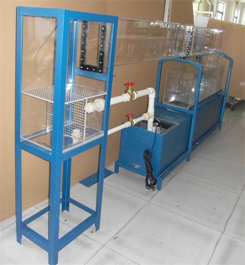 主要配置:實(shí)驗(yàn)工作槽,三角量水堰、回水蓄水槽、供水段穩(wěn)水頭部、多種實(shí)驗(yàn)?zāi)P汀y(cè)量?jī)x器、供水泵、流量調(diào)節(jié)裝置等組成,空間三疊層緊縮布置。