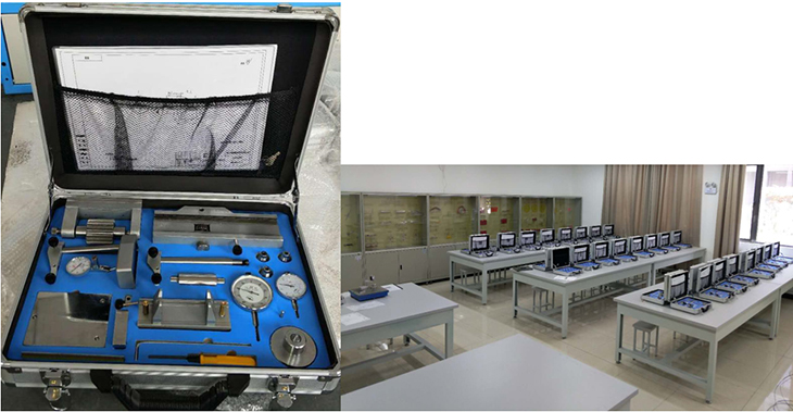 零件形位誤差測量組合實訓(xùn)裝置是根據(jù)《公差配合與技術(shù)測量》課程的基本教學(xué)要求,精心設(shè)計的一套零件形位誤差檢測組合訓(xùn)練產(chǎn)品。它由檢測零件、組合跳動儀、組合測微儀、配套圖紙及實訓(xùn)指導(dǎo)書組成。其目的是通過零件形位誤差的檢測,加深學(xué)生對形位誤差及形位公差基本概念的了解,掌握形位誤差測量的方法的技能,為公差配合在后續(xù)課程中的應(yīng)用奠定扎實的基礎(chǔ)。