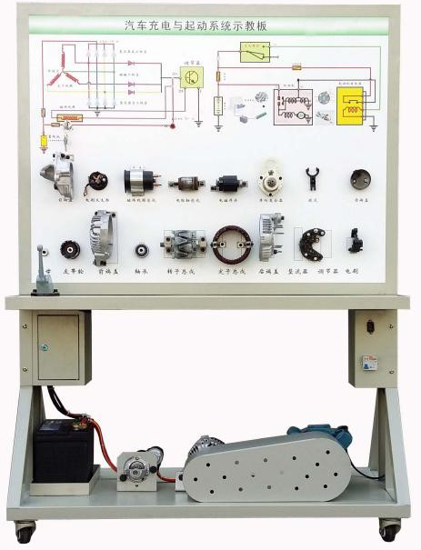4.示教板面板上安裝有起動機(jī)與發(fā)電機(jī)總成分解部件,可直觀認(rèn)識起動機(jī)與發(fā)電機(jī)的組成結(jié)構(gòu)。