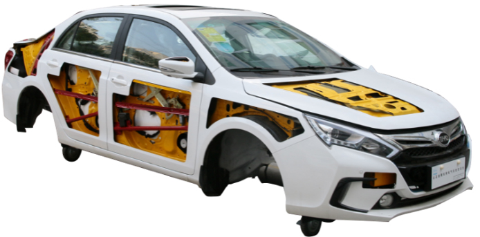 3.設備由原車解剖的車身平臺和教學板組成,原車車身車殼安裝原車零部件,底部安裝4個腳輪,移動靈活,腳輪帶自鎖裝置。