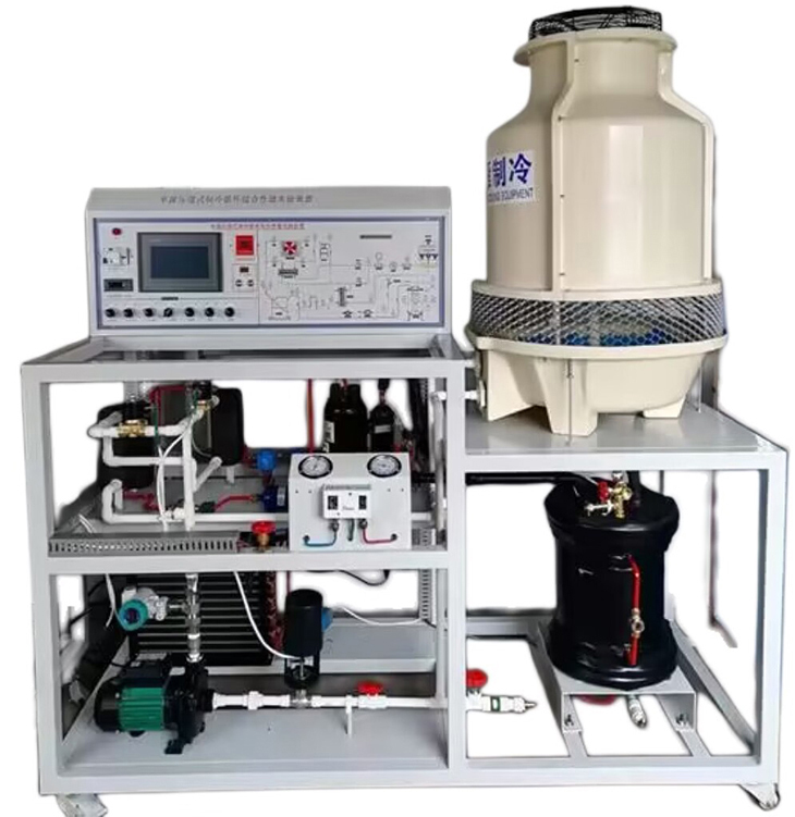 實(shí)驗(yàn)臺(tái)在原來(lái)的基礎(chǔ)上加裝冷卻塔,冷卻水實(shí)現(xiàn)了冷凝水自循環(huán)。冷卻塔流量:3T,電壓220V