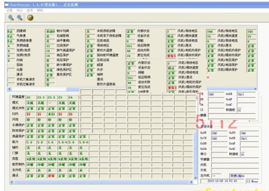 中央空調(diào)機(jī)由于工程復(fù)雜,設(shè)備分散,有的已經(jīng)裝修在開花板上測(cè)試程序,一但出現(xiàn)了故障,工程量相當(dāng)大,為了能夠快速準(zhǔn)確地測(cè)出故障是由主機(jī)機(jī)組還是室內(nèi)機(jī)的故障的,每個(gè)生產(chǎn)廠家根據(jù)生產(chǎn)的和維修的需要而開發(fā)了中央空調(diào)測(cè)試程序?蓽y(cè)試壓縮機(jī)的運(yùn)轉(zhuǎn)頻率,傳感器的各種數(shù)據(jù),電子膨脹閥的工作步數(shù)等幾十種中央空調(diào)的工作數(shù)據(jù)和狀態(tài),軟件可實(shí)現(xiàn)對(duì)內(nèi)機(jī)的控制,,可以對(duì)1-64臺(tái)內(nèi)機(jī)的狀態(tài)進(jìn)行設(shè)定。是高校提供了好的研究的學(xué)習(xí)設(shè)備。