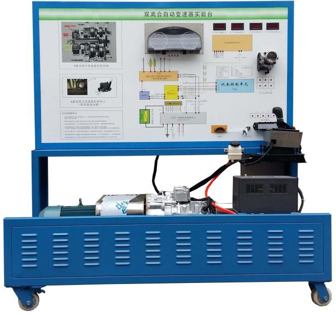 該設(shè)備采用翻新邁騰B8L 2021款電控雙離合器自動(dòng)變速器總成為基礎(chǔ),可調(diào)速三相異步電動(dòng)機(jī)做動(dòng)力源,對(duì)雙離合器自動(dòng)變速器進(jìn)行檔位顯示、空檔起動(dòng)、前進(jìn)檔及倒檔運(yùn)行等工況實(shí)踐操作。真實(shí)展示電控雙離合器自動(dòng)變速器組成結(jié)構(gòu)和工作過(guò)程。