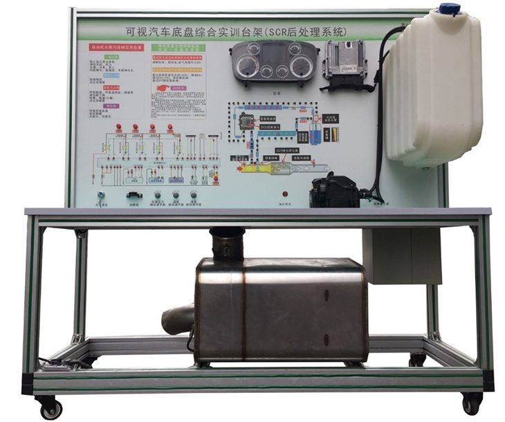 SCR后處理系統(tǒng)實驗設(shè)備底座框架采用高強(qiáng)度鋁合金型材拼接而成,平臺面板采用4mm厚耐腐蝕、耐創(chuàng)擊、耐污染、防火、防潮的高級鋁塑板,表面經(jīng)特殊工藝噴涂底漆處理;面板打印有永不褪色的彩色電路圖,表面噴涂光油;學(xué)生可直觀對照電路圖,認(rèn)識和分析控制系統(tǒng)的工作原理;實訓(xùn)臺面板上安裝有檢測端子、可直接在面板上檢測電信號,如電阻、電壓、電流等。