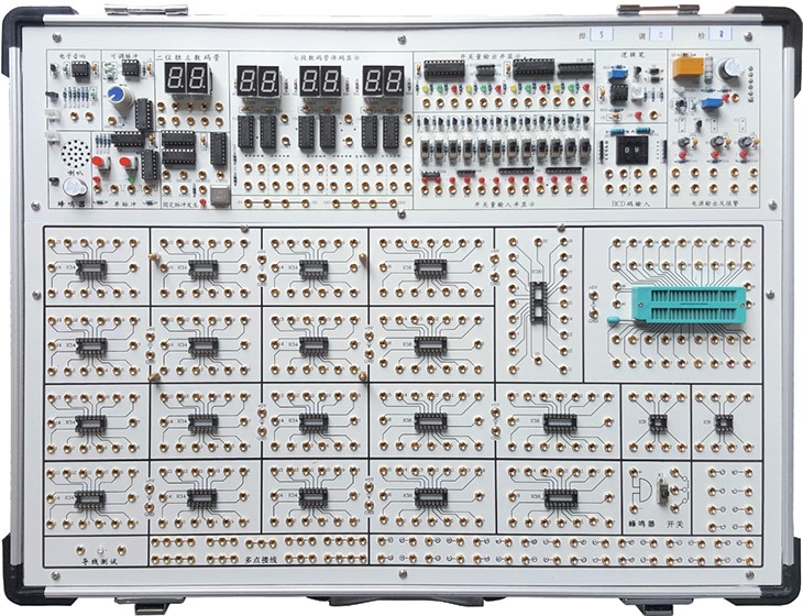 數(shù)字電路實(shí)驗(yàn)箱,數(shù)字電路實(shí)驗(yàn)室,數(shù)字邏輯實(shí)驗(yàn)箱、數(shù)字電路實(shí)驗(yàn)裝置、主要用于開(kāi)設(shè)電子信息科學(xué)與技術(shù)、自動(dòng)化和機(jī)電一體化三個(gè)專(zhuān)業(yè)的《數(shù)字電子技術(shù)實(shí)驗(yàn)》或《數(shù)字電子技術(shù)基礎(chǔ)實(shí)驗(yàn)》課程,該課程是相應(yīng)的《數(shù)字電子技術(shù)》或《數(shù)字電子技術(shù)基礎(chǔ)》理論課程中重要的實(shí)踐環(huán)節(jié)。課程的任務(wù)是通過(guò)實(shí)驗(yàn),使學(xué)生加深對(duì)所學(xué)理論課程內(nèi)容的理解,激發(fā)學(xué)習(xí)興趣,從實(shí)踐上驗(yàn)證所學(xué)的理論知識(shí);培養(yǎng)學(xué)生的實(shí)際動(dòng)手能力、解決問(wèn)題能力和設(shè)計(jì)數(shù)字電子電路的初步能力。數(shù)字電路實(shí)驗(yàn)箱由鋁木合金箱體、開(kāi)關(guān)電源、常用信號(hào)源和實(shí)驗(yàn)電路區(qū)組成。其中實(shí)驗(yàn)電路區(qū)采用全開(kāi)放模式,可根據(jù)需求靈活配置實(shí)驗(yàn)電路,以滿(mǎn)足不同層次學(xué)生的教學(xué)實(shí)驗(yàn)要求。