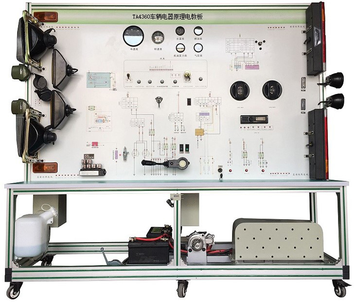 該設備采用泰安TA4360柴油機整車電器實物為基礎,充分展示汽車儀表系統(tǒng)、燈光系統(tǒng)、雨刮系統(tǒng)、喇叭系統(tǒng)、發(fā)動機電器系統(tǒng)、起動系統(tǒng)和充電系統(tǒng)等汽車電器各系統(tǒng)的組成結(jié)構(gòu)和工作過程。