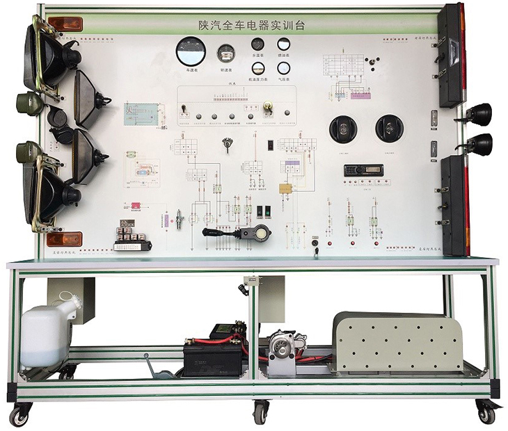 該設(shè)備采用泰安TA4360柴油機(jī)整車(chē)電器實(shí)物為基礎(chǔ),充分展示汽車(chē)儀表系統(tǒng)、燈光系統(tǒng)、雨刮系統(tǒng)、喇叭系統(tǒng)、發(fā)動(dòng)機(jī)電器系統(tǒng)、起動(dòng)系統(tǒng)和充電系統(tǒng)等汽車(chē)電器各系統(tǒng)的組成結(jié)構(gòu)和工作過(guò)程。