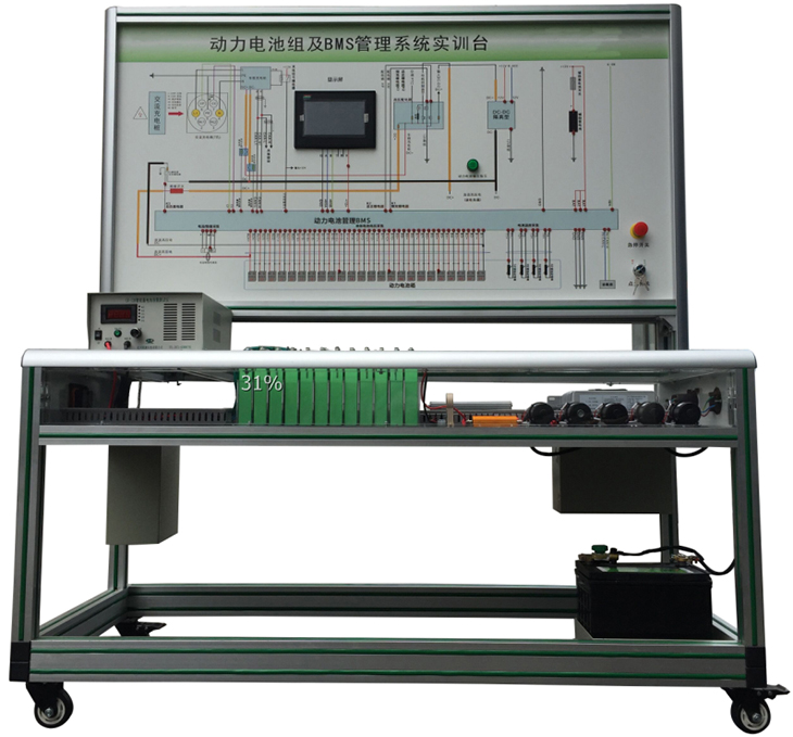 動(dòng)力電池管理系統(tǒng)實(shí)訓(xùn)臺(tái)選用新能源車輛磷酸鐵鋰 動(dòng)力電池包,單體電池(3.2V20AH,共24串),帶CAN總線的一體機(jī)BMS電池管理系統(tǒng),有被動(dòng)均衡功能;真實(shí)地呈現(xiàn)了磷酸鐵鋰動(dòng)力電池包核心零部件之間的連接控制關(guān)系、安裝位置和運(yùn)行參數(shù),以及高壓系統(tǒng)安全注意事項(xiàng),并培養(yǎng)學(xué)員對(duì)磷酸鐵鋰動(dòng)力電池包(BMS)故障分析和處理能力。適用于了解與驗(yàn)證電動(dòng)汽車的動(dòng)力電池參數(shù)進(jìn)行實(shí)時(shí)監(jiān)控、故障診斷、SOC估算、短路保護(hù)、絕緣檢測(cè)、充放電控制、均衡等功能,并通過CAN總線的方式與帶CAN通訊的車載充電機(jī)進(jìn)行信息交互,保障電動(dòng)汽車高效、可靠、安全運(yùn)行的BMS教學(xué)實(shí)訓(xùn)實(shí)驗(yàn)。
