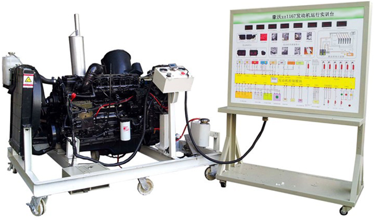 豪沃zz1167發(fā)動機運行實訓系統(tǒng)以翻新 豪沃zz1167汽車國三原廠柴油發(fā)動機總成。及運行附件為主體部件,發(fā)動機可起動運行,進行起動、加速、減速、故障檢測與診斷、故障模擬與排除等工況的實際操作,真實展示柴油發(fā)動機結(jié)構(gòu)與原理及工作過程。