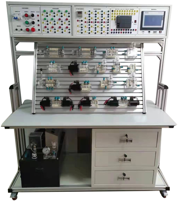 液壓實(shí)驗(yàn)實(shí)訓(xùn)室設(shè)備可承擔(dān)機(jī)電一體化技術(shù)、機(jī)械制造與自動(dòng)化、模具設(shè)計(jì)與制造、數(shù)控加工技術(shù)以及汽車維修等專業(yè)的液壓與氣動(dòng)技術(shù)、機(jī)電設(shè)備維修、機(jī)電設(shè)備安裝與調(diào)試、機(jī)電一體化設(shè)計(jì)等課程的實(shí)驗(yàn)或?qū)嵱?xùn)。 液壓實(shí)驗(yàn)實(shí)訓(xùn)臺(tái)主要承擔(dān)機(jī)械工程及自動(dòng)化專業(yè)方向的本、?埔簤簜鲃(dòng)的課程實(shí)驗(yàn)。能夠顯著增強(qiáng)學(xué)生的認(rèn)識(shí)和理解,同時(shí)也能鍛煉學(xué)生的動(dòng)手能力,亦可為社會(huì)培養(yǎng)一批液壓技術(shù)方面的專項(xiàng)人才。 液壓實(shí)驗(yàn)實(shí)訓(xùn)臺(tái)主要研究方向?yàn)橐簤宏P(guān)鍵元件設(shè)計(jì),機(jī)電液系統(tǒng)感知與智能控制,機(jī)電液系統(tǒng)先進(jìn)材料研究。 液壓與氣動(dòng)技術(shù)實(shí)驗(yàn)室設(shè)備主要承擔(dān)機(jī)電類相關(guān)專業(yè)《液壓與氣動(dòng)技術(shù)》課程的專業(yè)實(shí)驗(yàn)任務(wù)。能提供包括液壓泵和控制元件結(jié)構(gòu)拆裝與分析實(shí)驗(yàn)、系統(tǒng)回路控制實(shí)驗(yàn)、系統(tǒng)性能實(shí)驗(yàn)和氣動(dòng)技術(shù)實(shí)驗(yàn)在內(nèi)的不同類型的實(shí)驗(yàn)。液壓實(shí)驗(yàn)室所開設(shè)的實(shí)驗(yàn)和液壓(或氣動(dòng))行業(yè)中的液壓系統(tǒng)(或氣動(dòng)系統(tǒng))的設(shè)計(jì)、連接調(diào)試、維護(hù)等緊密相關(guān),通過(guò)機(jī)-電-液一體化綜合控制實(shí)驗(yàn),學(xué)生可系統(tǒng)地學(xué)習(xí)PLC程序設(shè)計(jì)與調(diào)試、液壓回路的設(shè)計(jì)與調(diào)試,并且通過(guò)力控軟件使相關(guān)知識(shí)有機(jī)地結(jié)合在一起,實(shí)現(xiàn)對(duì)硬件的動(dòng)作,從而提高各門課程的綜合應(yīng)用能力。