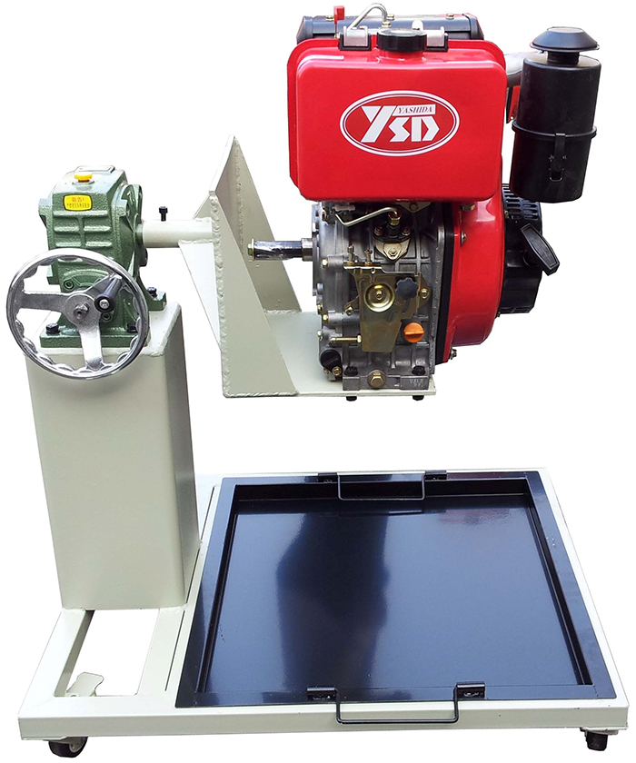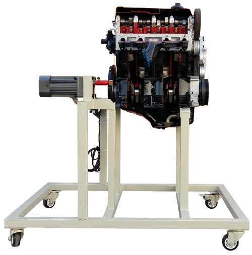 5、拆裝發(fā)動(dòng)機(jī)(運(yùn)轉(zhuǎn))帶翻轉(zhuǎn)架:采用大眾TSI缸內(nèi)直噴電控汽油發(fā)動(dòng)機(jī)總成(易于拆裝),組裝在專用發(fā)動(dòng)機(jī)拆裝翻轉(zhuǎn)架上。采用減速翻轉(zhuǎn)機(jī)構(gòu),可使發(fā)動(dòng)機(jī)任意角度旋轉(zhuǎn),并能任意位置鎖止,便于學(xué)生從不同的角度進(jìn)行拆卸和裝配。底部放置大面積接油盤,便于小零件或螺絲的集中存放。拆裝翻轉(zhuǎn)架采用高強(qiáng)度的鋼結(jié)構(gòu)焊接,表面經(jīng)噴涂工藝處理,底部帶有自鎖腳輪裝置,可移動(dòng)式,方便教學(xué)。